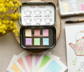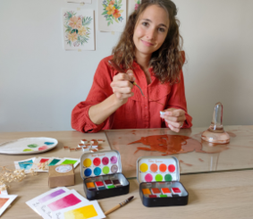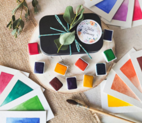 Aquarelles artisanales françaises de qualité extra-fines. Une collection unique de couleurs vives et pigmentées disponible sous divers formats (demi-godets, quarts de godets, palettes composées, sets, kit découverte de l'aquarelle etc.).